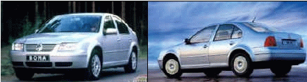 寶來側(cè)面線條分為三段,第一段是車頭部分,動態(tài)感與凱越近似,第二段為下窗線,比較接近水平,第三段為尾廂部分,雖然也是水平式的但是高出了側(cè)窗下窗線和車頭部分,因此也提高了整車的動態(tài)感。在車頭前坡度與車尾后坡度方面,前坡比后坡稍大一些,對整車動態(tài)影響很小。在車頂動態(tài)方面,前坡比后坡大,在側(cè)窗的窗線坡度上面,前坡比后坡更大一些。綜合來看,寶來的整車動態(tài)感比凱越要小,大約為3級。