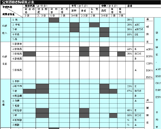 在A類細(xì)分市場,寶來與凱越基礎(chǔ)性特征有效近似率為65%,未達(dá)到70%。關(guān)鍵性特征方面為15%,遠(yuǎn)遠(yuǎn)小于50%,總體性特征方面為40%,也與