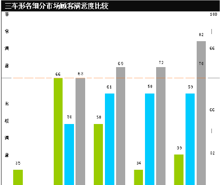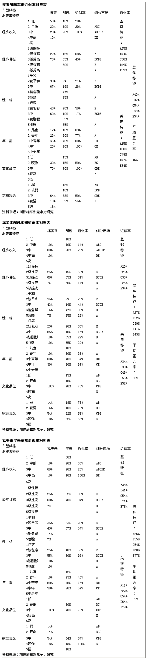 60%有三分之一的距離。從這些近似率數(shù)據(jù)表明,寶來與福美來在車形風(fēng)格方面對于A類細(xì)分市場而言未構(gòu)成較為直接的競爭關(guān)系。