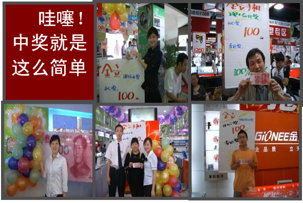 “ 策劃沒有問題,你給你們王總請示一下,看他是否愿意再投三五千元錢”我打手機告訴張生輝,“你們明天這樣準備,吹幾百個氣球,把寫有壹佰元和壹拾元的紙條塞入氣球,21個氣球一組,其中20個為10元的獎項,一個是100元獎項,顧客買金立手機可以用筆扎氣球,扎到壹佰元送100元,扎到壹拾元送10元。前幾天我們大聲疾呼金立送錢只送10元,那叫渾水摸魚,因為五一當天場面混亂,送錢多不如叫聲高,送多也白送。五月四日之后,賣場冷清下來,人們恢復理智,再送10元肯定缺乏吸引力。買一部手機送100元我們送不起。只能用這種花費不大的方式!