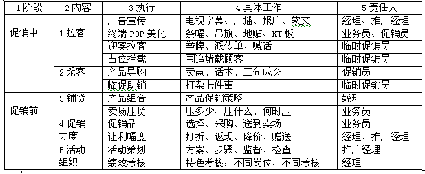 關(guān)于促銷活動策劃的執(zhí)行,是提供操作要點,簡便簡便再簡便。是制定動作標準,演練演練再演練。是責任到人,檢查檢查再檢查。是平時用功,培訓培訓再培訓。