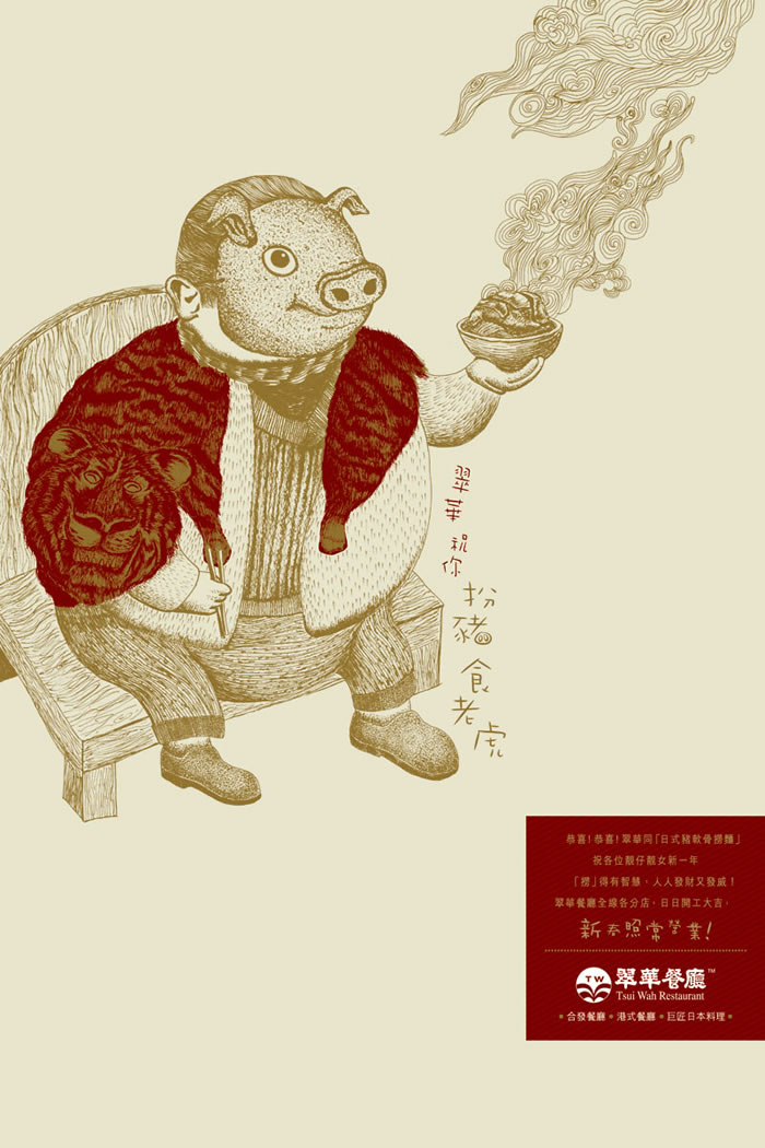 作者:客戶: 翠華餐廳 / 新年賀稿 廣告公司: 香港宣揚(yáng)主義 創(chuàng)作總監(jiān): 孫淑耀 / 楊家輝 文案: 楊家輝 美術(shù)指導(dǎo): 孫淑耀 / 陳振軒 插圖師: 陳振軒