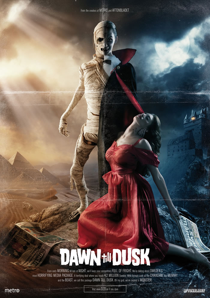 From early morning till late at night, we'll keep your competitors full of fright. We're talking about Sweden's most horrifying media package. A terrifying deal where you reach 4,2 million Swedes. With formats such as the Chainsaw, the Mummy and the Beast, we call this package Dawn till Dusk. Oh my god, we've created a monster. Visit www.d2d.se if you dare
