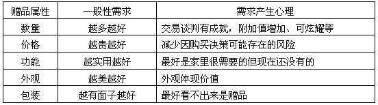 。1)顧客對(duì)贈(zèng)品屬性的一般性需求及需求產(chǎn)生的心理分析