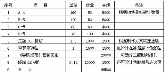 視分公司費(fèi)用水平,其他型號(hào)也可本次活動(dòng)范圍內(nèi),如顧客有要求導(dǎo)購(gòu)員不予主動(dòng)贈(zèng)送,制造申請(qǐng)假象。另外,對(duì)策劃的意外型號(hào)不做主動(dòng)宣傳。