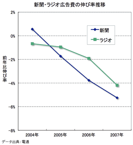 如今的年輕一代,正在逐漸丟失閱讀報(bào)紙和收聽廣播的生活習(xí)慣。結(jié)果直接造成報(bào)紙、無(wú)線電廣播的廣告費(fèi)收入急速減少的局面。