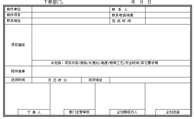 企劃部制作單