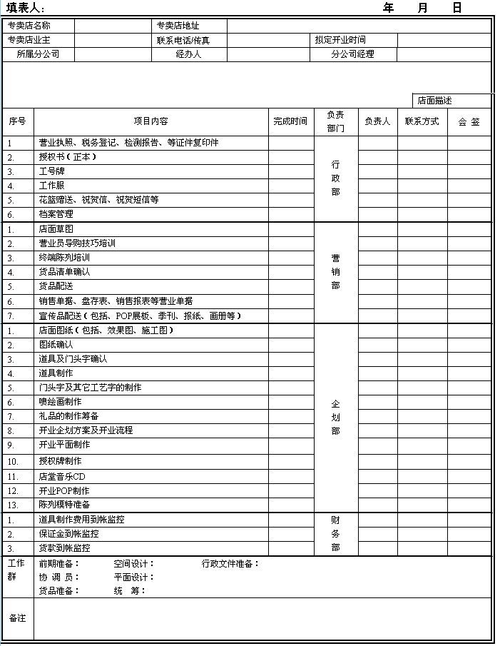 服飾專賣店開業(yè)計劃表