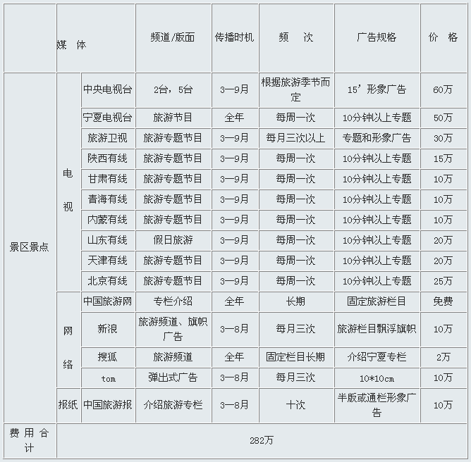 二OO四年寧夏旅游形象廣告宣傳媒體計劃