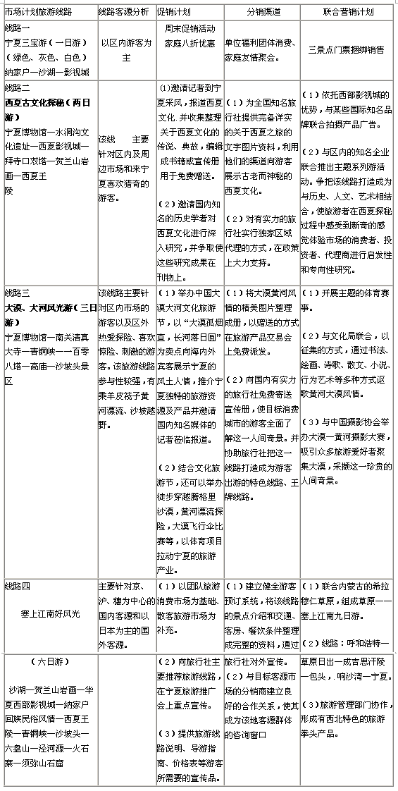 解謎寧夏旅游市場營銷規(guī)劃方案(3)