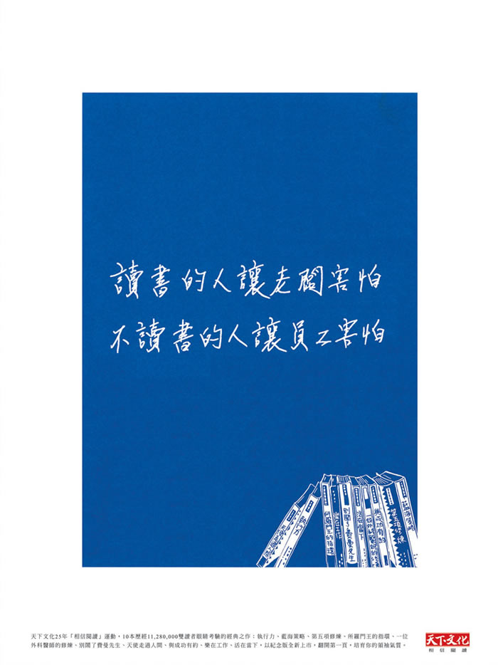 當(dāng)前位置:中國廣告人網(wǎng)站>創(chuàng)意策劃>平面饕餮>詳細(xì)內(nèi)容 天下文化出版社平面廣告(3) 作者:佚名 時間:2009-10-19 字體:[大] [中] [小]