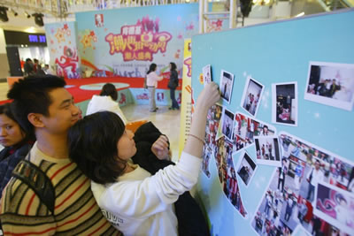 為了提高消費(fèi)者的參與性和增加活動(dòng)的趣味與互動(dòng)感,我們?cè)诳系禄蛷d內(nèi)開辟了活動(dòng)專區(qū)“趣味拍照區(qū)”,一種可以讓人造成視錯(cuò)覺的背景板,畫面中是充滿時(shí)尚元素的卡通街頭,提供背影輪廓供游客進(jìn)行拍照,讓拍照者仿佛置身巴黎街頭,東京鬧市。