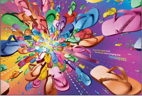 總的來(lái)說(shuō),20世紀(jì)70年代開(kāi)始,巴西廣告就開(kāi)始在國(guó)際廣告界嶄露頭角,經(jīng)過(guò)80年代的發(fā)展,到了90年代已然發(fā)展成世界廣告舞臺(tái)上一股獨(dú)立的廣告力量。其中最具代表性的作品就是人字拖哈瓦那(Havaianas) 近幾年來(lái)的大量廣告作品(如圖2),完全以視覺(jué)取勝,并贏得國(guó)際廣告界的充分肯定和認(rèn)可。