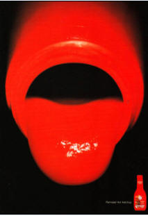 不過(guò)以視覺(jué)為導(dǎo)向的廣告創(chuàng)作,本質(zhì)上是一種以國(guó)際化為導(dǎo)向的做法。這也因此帶來(lái)了一些負(fù)面影響,其中最為突出的就是不斷出現(xiàn)一些專門為迎合國(guó)外評(píng)委而制作的“飛機(jī)稿”。其中1999年獲戛納金獅獎(jiǎng)的辣醬廣告(如圖3),在廣告創(chuàng)意領(lǐng)域最為知名,只是沒(méi)幾人知道其為“飛機(jī)稿”。