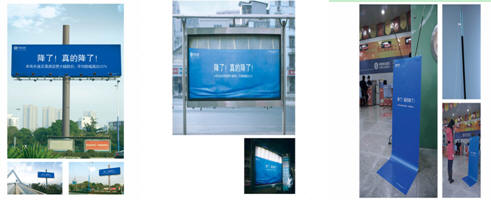 移動(dòng)的資費(fèi)要下調(diào),怎樣傳達(dá)這一廣告信息呢?在廣告投放實(shí)物載體上把廣告畫面降下來,形式十分新穎,也很搶人眼球,試想當(dāng)你身處戶外時(shí),你的注意力也一定會(huì)被它吸引過去吧,訊息也有效地傳達(dá)了。