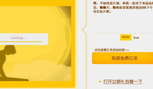 我很快填好了信息。同時(shí)還被網(wǎng)頁上豐富有趣的其他版塊內(nèi)容活動(dòng)給吸引住了,有辦公室DV自拍秀,還有立頓大禮包,使我對(duì)立頓的印象更深刻了。最重要的是你可以通過注冊(cè),為你的朋友免費(fèi)派送紅茶,收到紅茶的人又可以自己注冊(cè),然后再繼續(xù)向其他的朋友派送。剛招呼完我這兒,MM又很快去招呼其他同事了:快打開鏈接,這是我給你們送的紅茶。