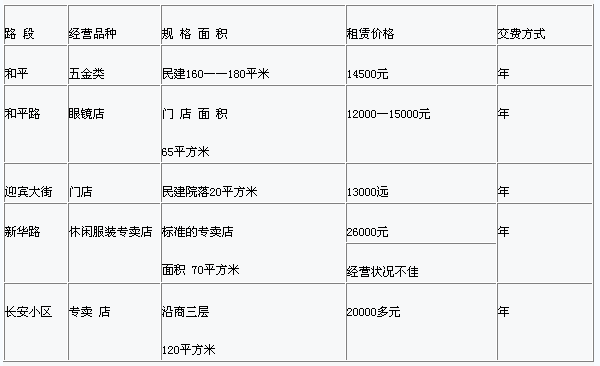 商業(yè)地產(chǎn)租賃交易價(jià)格顯示表格