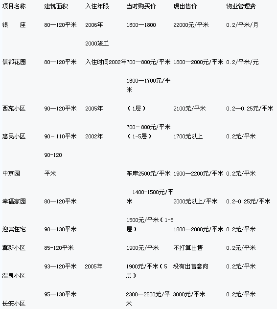 (1)冀州市現(xiàn)已入住的房?jī)r(jià)數(shù)據(jù)顯示表格