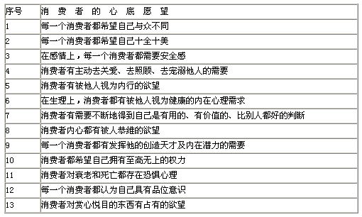 表2-1 消費(fèi)者心中隱藏的13個(gè)秘密