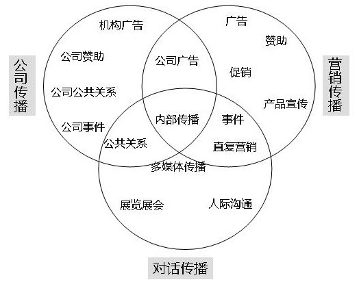 公司傳播、營銷傳播和對話傳播的內容構成,請參見下圖。這其中,內部傳播重