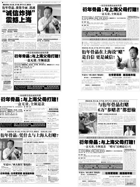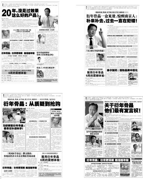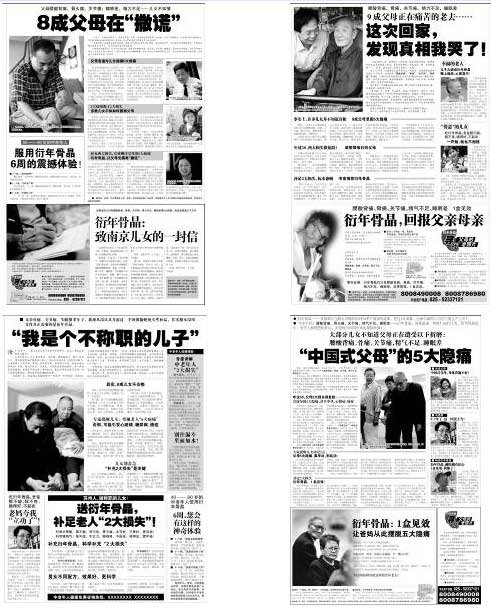 比如,中國(guó)父母往往不愿給兒女添麻煩,即使身體有問(wèn)題也是自己挺著,不愿給兒女說(shuō),怕兒女擔(dān)心。針對(duì)這一社會(huì)現(xiàn)象,我們推出了《8成父母在撒謊》、《中國(guó)式父母的5大隱痛》(文中所列5大“隱痛”就是衍年骨晶所能解決的5大癥狀)。