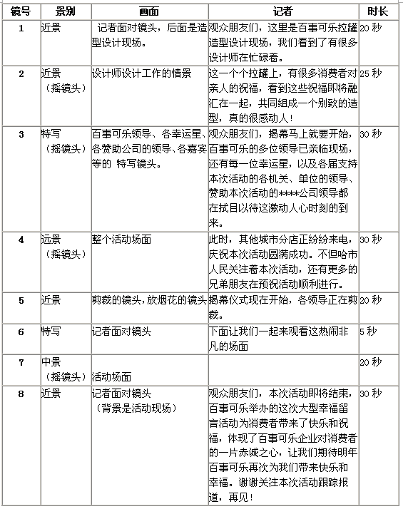 百事可樂(lè)元旦活動(dòng)電視專題報(bào)道腳本(2)