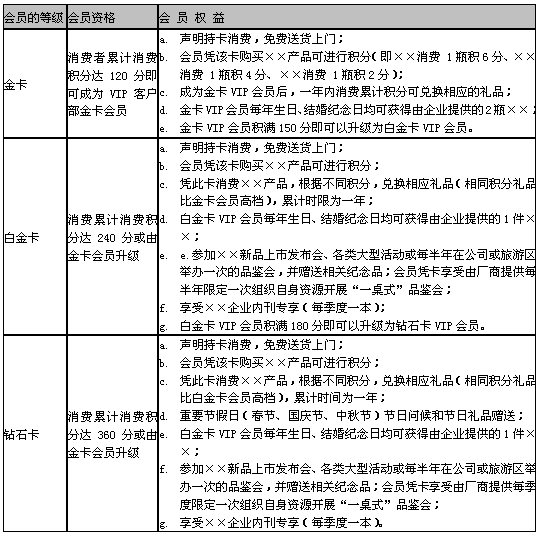 上例是一個(gè)以單一白酒品種為主的客戶累計(jì)積分計(jì)劃及享受權(quán)益,這樣的方式會(huì)使得客戶的積累由“人情化”的關(guān)系積累方式逐步向“利益化”的積累方式,同時(shí)積分有利于促進(jìn)客戶的持續(xù)消費(fèi)。實(shí)施過(guò)程中可考慮以經(jīng)銷(xiāo)商為主,這樣香煙、紅酒等多品種供應(yīng)更能持續(xù)滿足客戶需求,客戶黏度工作也更加好做。09年,筆者與企業(yè)市場(chǎng)部一起推動(dòng)經(jīng)銷(xiāo)商開(kāi)始注重客戶黏度的建設(shè),開(kāi)始重視核心群的消費(fèi)管理,部分地區(qū)已開(kāi)始實(shí)施推進(jìn),并且要求客戶建立自己的品牌形象店,并使之成為載體,進(jìn)行公關(guān)、贈(zèng)酒、新多產(chǎn)品銷(xiāo)售、客戶積分的運(yùn)營(yíng)平臺(tái)。