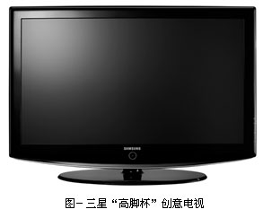 舉個(gè)成功的例子,“三星”液晶電視前些年的市場(chǎng)推廣就比較典型。他們用喝紅酒的高腳杯作為創(chuàng)意靈感,開(kāi)發(fā)了一款底座酷似高腳杯的液晶電視(如下圖),而且,采用純黑色的亮光板作為外觀。