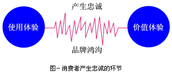 這個(gè)問(wèn)題,我們?cè)缭诘诙吕锞突卮疬^(guò)了,即:恰恰在“品牌鴻溝”里產(chǎn)生。也就是,消費(fèi)者的忠誠(chéng)最有可能產(chǎn)生在從“使用體驗(yàn)”向“價(jià)值體驗(yàn)”過(guò)度的環(huán)節(jié)(如下圖)。
