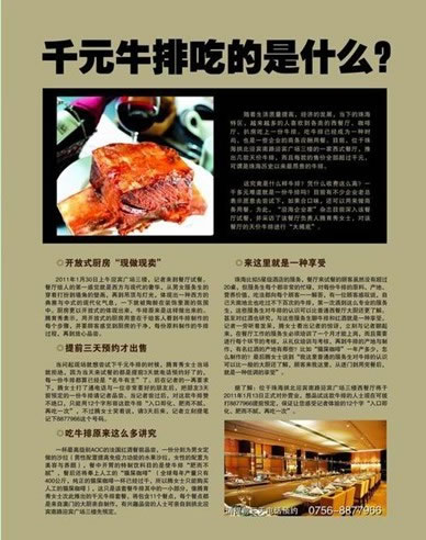 確定雜志的新聞標(biāo)題:千元牛排吃的什么?后來發(fā)現(xiàn),在新聞里面加電話,還有打電話去咨詢的顧客。