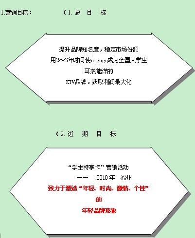 通過將a gogo定位為引領(lǐng)引領(lǐng)“年輕、時(shí)尚、激情、個(gè)性”生活態(tài)度和生活方式的自助KTV品牌,我們決定采取差異化基礎(chǔ)上的創(chuàng)新戰(zhàn)略和營銷方案,來進(jìn)行“學(xué)生特享卡”的銷售辦理,從而吸引大學(xué)生群體到a gogo進(jìn)行K歌娛樂消費(fèi)。
