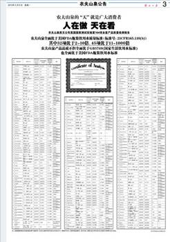 農(nóng)夫山泉美國檢測(cè)標(biāo)準(zhǔn)廣告,在各大報(bào)紙和網(wǎng)上出現(xiàn)。廣告詳細(xì)羅列了基于美國標(biāo)準(zhǔn)的大量專業(yè)數(shù)據(jù)。廣告稱“人在做天在看,農(nóng)夫山泉的‘天’就是廣大消費(fèi)者”,并原文公布了美國國家測(cè)試實(shí)驗(yàn)室164項(xiàng)全套嚴(yán)格質(zhì)量檢測(cè)報(bào)告。廣告還表示,農(nóng)夫山泉全面優(yōu)于美國FDA瓶裝飲用水質(zhì)量標(biāo)準(zhǔn),其中32項(xiàng)優(yōu)于2-10倍,45項(xiàng)優(yōu)于11-1000倍。農(nóng)夫山泉產(chǎn)品質(zhì)量不但全面優(yōu)于國家生活飲用水標(biāo)準(zhǔn),也全面優(yōu)于美國FDA瓶裝飲用水標(biāo)準(zhǔn)。不僅各項(xiàng)數(shù)據(jù)羅列的非常精準(zhǔn),廣告文案也意義深刻,讓受眾看完后就一目了然。