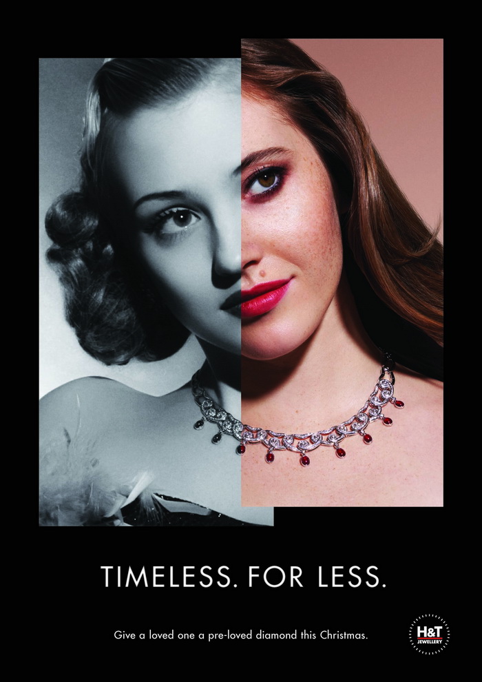M&C Saatchi 與 H&T 密切合作,開發(fā)了一系列引人注目的英雄處決,每一個都通過將復(fù)古黑白攝影與現(xiàn)代彩色圖像融合在一起,通過一件鉆石珠寶連接起來,將人們喜愛的概念變?yōu)楝F(xiàn)實(shí)。廣告使用戲劇性的黑色背景和特征線,例如“Timeless. 花更少的錢”和“預(yù)愛的鉆石。準(zhǔn)備好再次被愛”。所有的處決都帶有標(biāo)語:“在這個圣誕節(jié)給心愛的人一顆心愛的鉆石”。