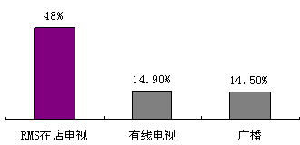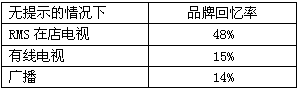 RMS的調(diào)查結(jié)果則是,其店內(nèi)顧客在無提示的情況下,通過在店電視廣告的品牌回憶率遠(yuǎn)遠(yuǎn)高于其他傳統(tǒng)媒體,達(dá)到了48%: