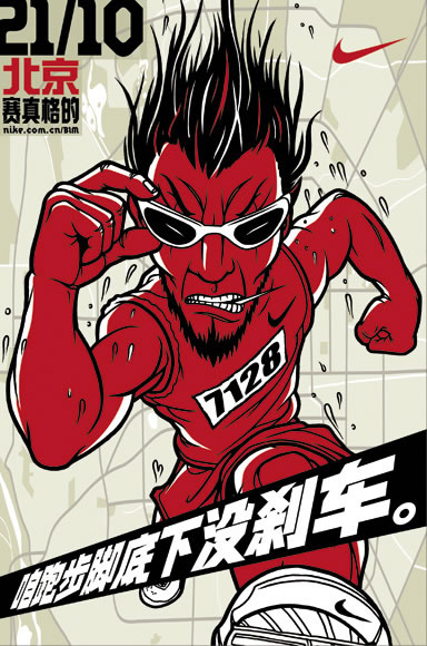 北京人愛(ài)說(shuō)大話,但這次北京“賽真格的”;侗本┤恕昂妹孀印(ài)吹牛、說(shuō)話幽默”的特性,北京馬拉松以一種輕鬆詼諧的宣戰(zhàn)方式亮相京城。北京特色的人物,地道京腔的廣告語(yǔ),讓北京馬拉松在高漲的人氣下輕鬆開(kāi)跑。