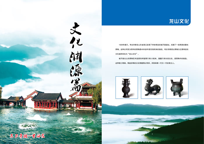 1928年春天,考古學(xué)家在山東省章丘發(fā)現(xiàn)了舉世聞名的城子崖遺址,挖掘了一批精美的磨光黑陶,這種以河泥為原料的黑陶是4000多年前東夷民族的獨創(chuàng),考古學(xué)家把以黑陶為主要特征的文化遺存命名為“龍山文化”。