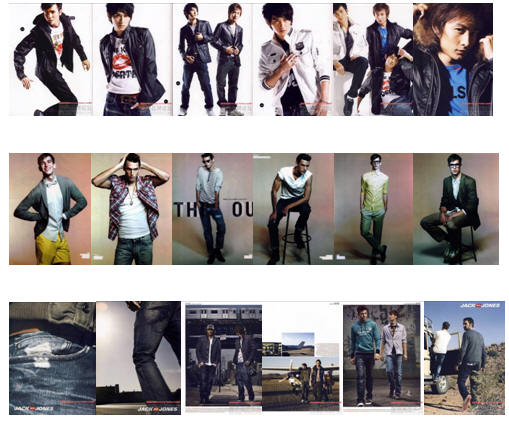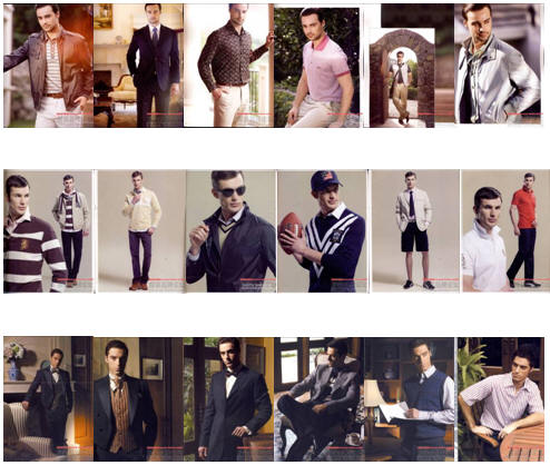 第二組選擇了三個(gè)休閑男裝品牌的畫冊(cè)進(jìn)行了對(duì)比。