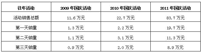 通過對海門店歷年以來國慶促銷數據的比較,我們不難發(fā)現(xiàn):2011年比2009年增長近8倍,比2010年增長近4倍。可以這么說,三聯(lián)家紡海門店今年國慶期間的促銷活動是比較成功的。海門店活動的成功到底是偶然還是必然?筆者有幸全程參與了此次促銷活動,認為海門店活動的成功是必然的結果。那么,在產品價格較往年同期活動沒有任何優(yōu)勢的前提下,海門店活動的成功要素到底有哪些?