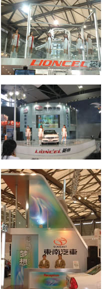 2003年4月,東南汽車(chē)給上海吹來(lái)一股人性化科技之風(fēng)。從展場(chǎng)的設(shè)計(jì),到展車(chē)、節(jié)目表演的安排,都大大強(qiáng)化了東南汽車(chē)的品牌印象。其中一體化車(chē)身的實(shí)物展示,更獲得車(chē)迷們的一致認(rèn)可。而從臺(tái)灣帶來(lái)的專(zhuān)職模特,更成為一道靚麗的風(fēng)景線(xiàn)。