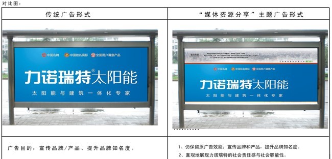 在此,根據(jù)公交候車廳平面媒體的特性,我們設(shè)計制作了一種“即商業(yè)又公益”的廣告形式。將商業(yè)廣告與公益廣告合二為一,使商家的產(chǎn)品信息與公益信息出現(xiàn)在同一個平面內(nèi)。我們把這種廣告形式叫作:“媒體資源分享”主題廣告形式,應(yīng)用的廣告策略就是:利用公益知識達成廣告目的。