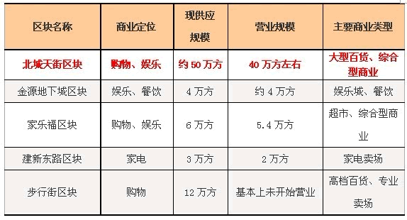 4)、區(qū)塊比較及發(fā)展趨勢、商業(yè)規(guī)模及類型比較