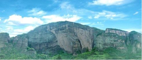 桂平二十奇:天造城墻龍?zhí)睹亍執(zhí)兜闹骶耙谎弁ド绞R整,就是一塊塊磚石,山體就像巨大的城墻,整個景區(qū)就是一座天造的城墻,最后在龍?zhí)镀俨夹纬梢粋圍合的城池,所以,龍?zhí)队址Q為天城。