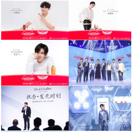 為了讓此次盛典獲得更大曝光度,除了在活動(dòng)前期邀請(qǐng)多位KOL在微博/微信進(jìn)行產(chǎn)品種草,話題討論等預(yù)熱動(dòng)作外,在盛典當(dāng)天,城野醫(yī)生更是邀請(qǐng)了三位明星體驗(yàn)官全程參與—— “駐顏之光”護(hù)膚體驗(yàn)官炎亞綸,“曜白之光”護(hù)膚體驗(yàn)官符龍飛和“有恃無‘孔’之光”護(hù)膚體驗(yàn)官周震南品牌大使,合力助陣此次盛典,還能get 三位男星與Dr.Ci:Labo合作的驚喜視頻,